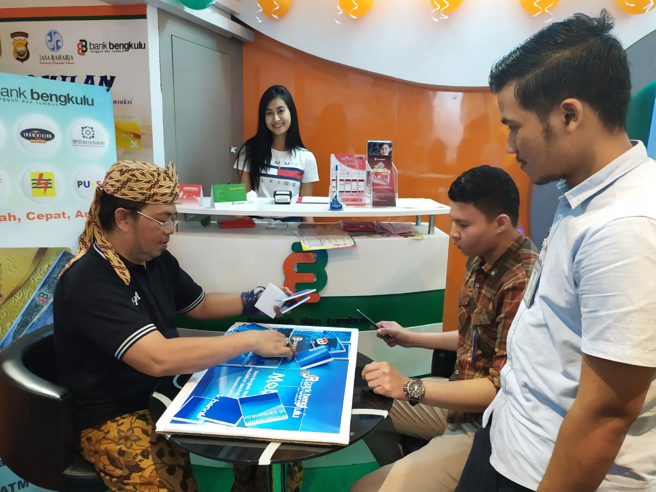 Pantauan Media ini,Masyarakat Bengkulu antusias datangi Stand Bank Bengkulu yang dibuka pada Festival Bumi Rafflesia tahun 2019 di Sport Center Bengkulu. Kedatangan mereka dengan tujuan beragam ada yang membuka rekening baru, bermain games, bahkan eksis mengikuti lomba selfie T-Money Bank Bengkulu.