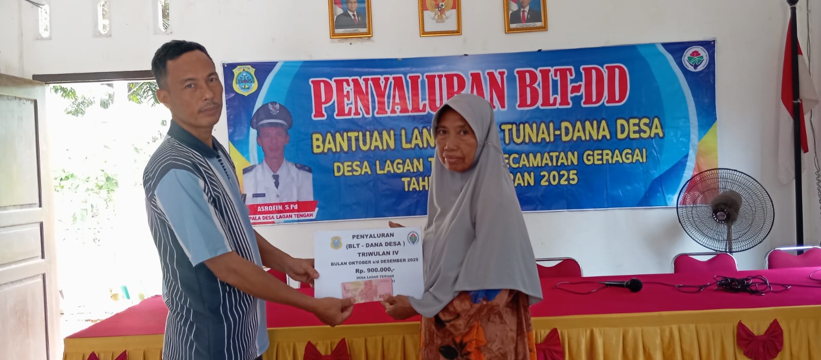 Tanjabtim,Rakjat.com -Pemerintah Desa Lagan Tengah, Kecamatan Geragai Kabupaten Tanjung Jabung Timur,menyalurkan Bantuan Langsung Tunai (BLT) Dana Desa (DD) tahap 3 tahun anggaran 2025 di aula kantor Desa.Selasa 16/12/2025.