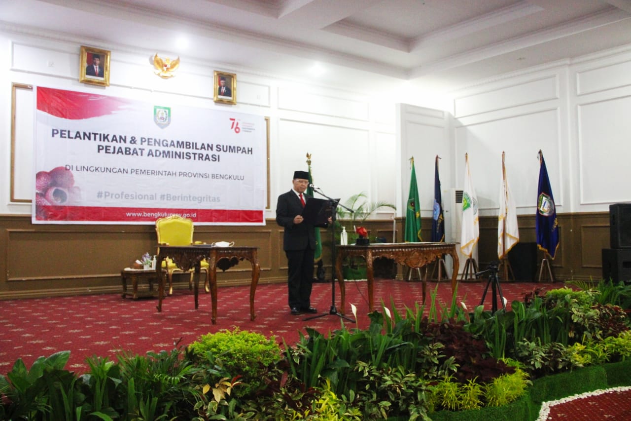 Bengkulu, Rakjat.com - Gubernur Bengkulu Rohidin Mersyah melantik dan mengambil sumpah ratusan pejabat administrasi di lingkungan Provinsi Bengkulu. Pelantikan dalam situasi pandemi dilakukan secara virtual hybrid. Dalam amanatnya, Gubernur Rohidin tekankan pejabat wajib melek teknologi dan juga sensitif sosial.