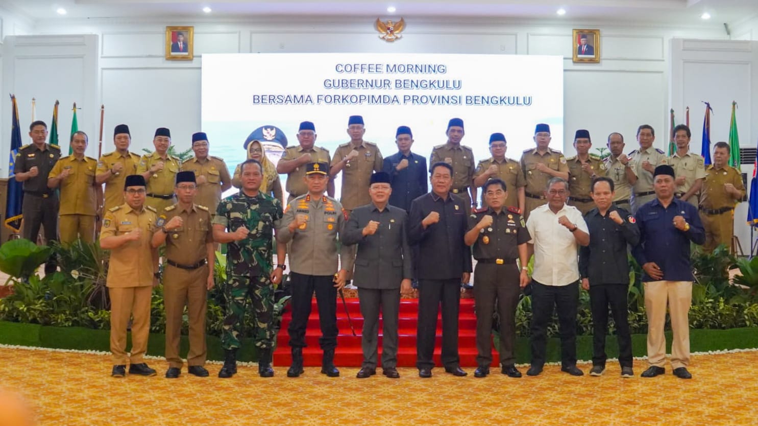 Bengkulu, Rakjat.com - Ketua DPRD Provinsi Bengkulu Ihsan Fajri Hadiri Coffee Morning Bersama Forkopimda Provinsi Bengkulu, membahas terkait Kamtibmas, Pemilu & Pengelolaan Pantai Panjang, di Balai Raya Semarak Bengkulu, Selasa (23/05).