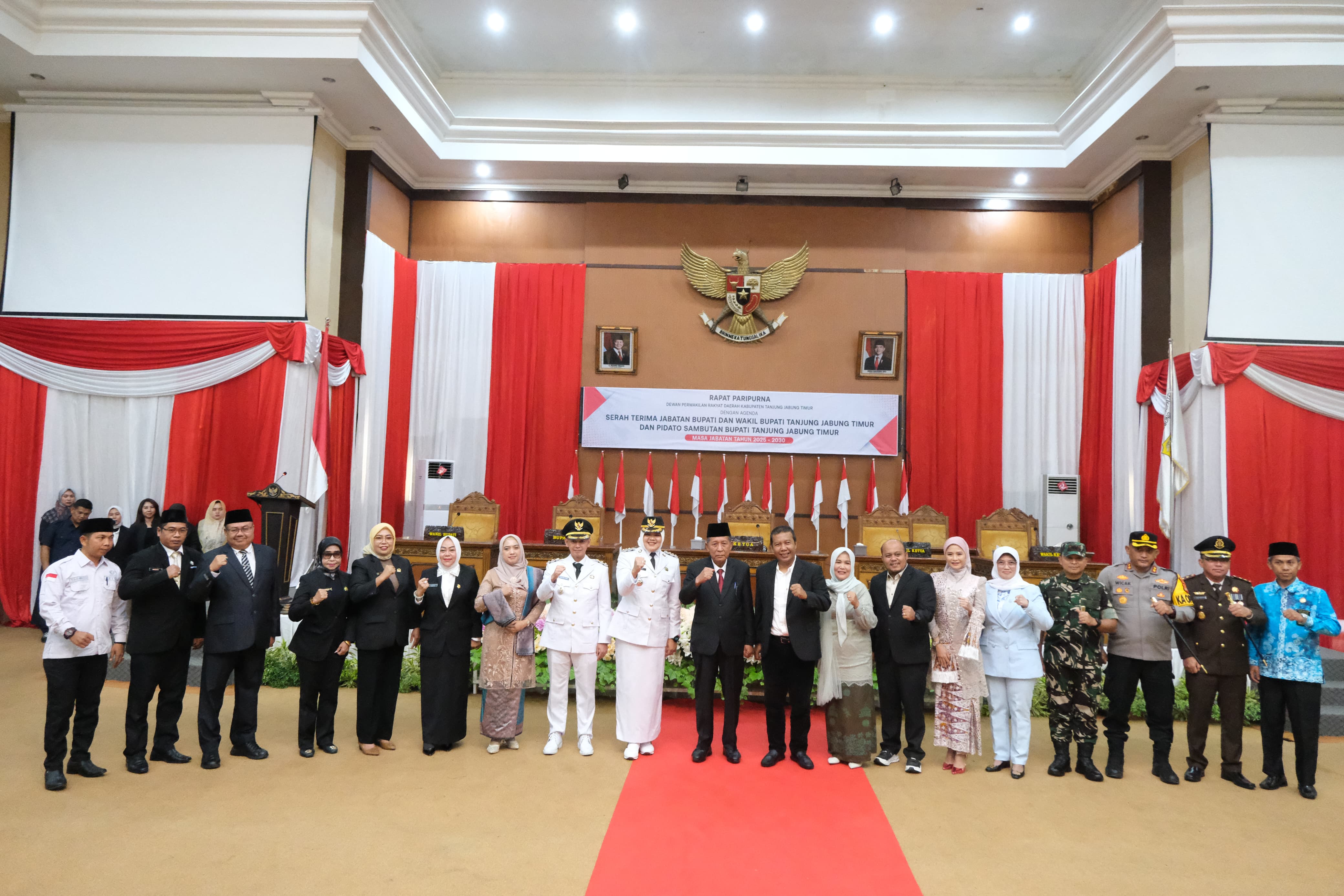 Muara Sabak,Rakjat.com - Wakil Gubernur Jambi Drs. H. Abdullah Sani, M.Pd.I menghadiri serah terima jabatan Bupati Dan Wakil Bupati Kabupaten Tanjung Jabung Timur (Tanjabtim) periode 2025-2030, bertempat di Gedung DPRD Kabupaten Tanjung Jabung Timur, Jum’at (07/03/2025). Serah terima jabatan ini digelar setelah Presiden RI Prabowo Subianto melantik secara resmi Bupati Tanjabtim Hj. Dillah Hikmah Sari, S.T., dan Wakil Bupati Tanjabtim Muslimin Tanja, S.Th.I.,M.Si di Istana negara Jakarta beberapa waktu lalu.