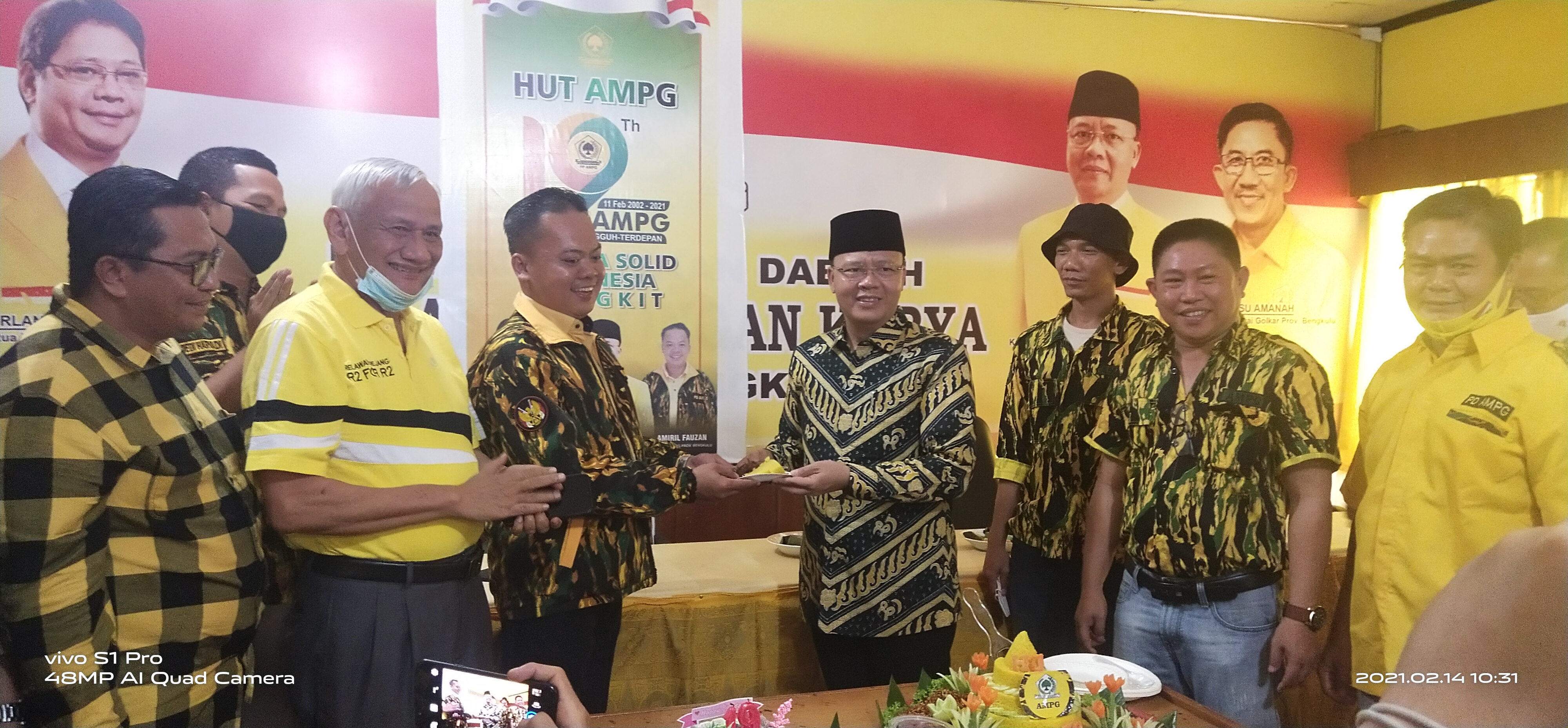 Ketua DPD I Partai Golkar yang sekaligus Ketua Dewan Pembina AMPG Dr H Rohidin Mersyah mengatakan selamat kepada AMPG, Khususnya AMPG Bengkulu yang pada Hari ini Genap pada usia 19 Tahun.