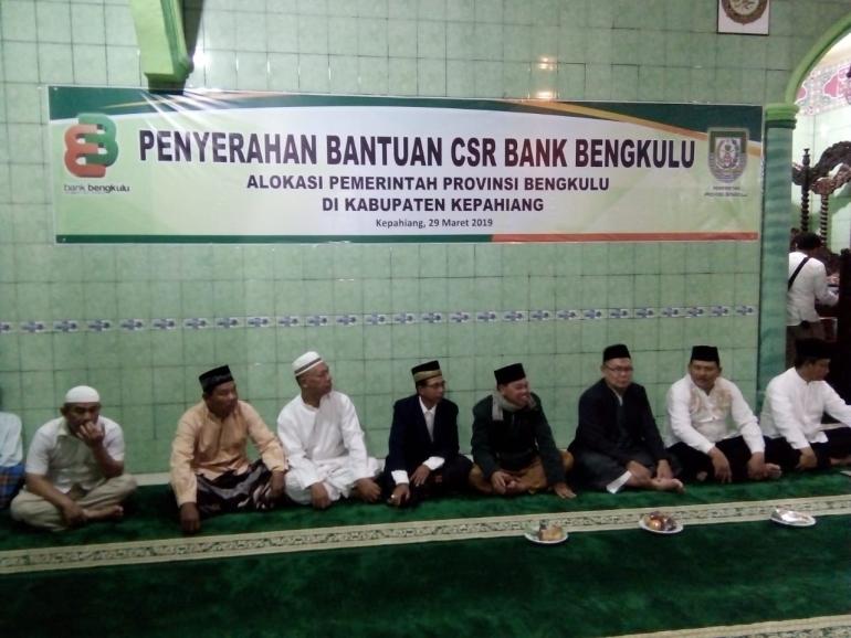 Sebelum penyaluran CSR, Gubernur Bengkulu beserta Direktur Utama Bank Bengkulu Agussalim, Bupati Kepahiang Hidayatullah Sjahid, Unsur FKPD, OPD, Kepala Instansi dan Masyarakat menggelar Solat Isya berjamaah.