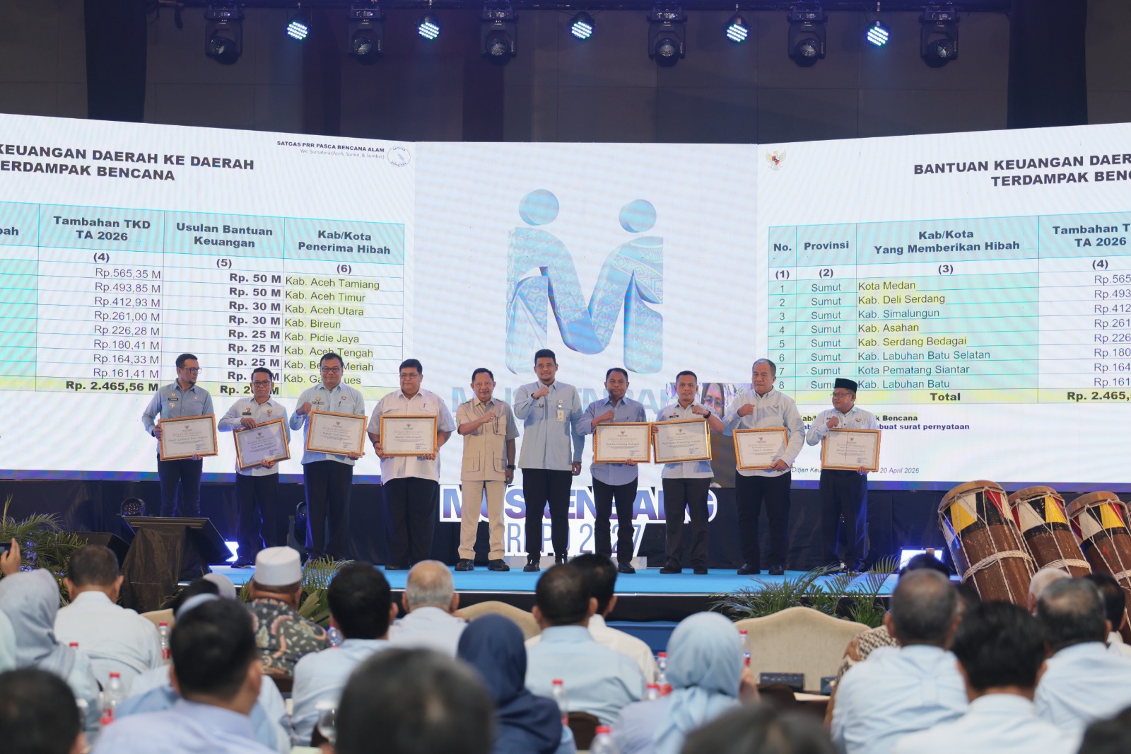 Dalam forum strategis tersebut, Bupati Asahan menerima piagam penghargaan dari Menteri Dalam Negeri atas kontribusi Pemerintah Kabupaten Asahan dalam membantu Pemerintah Kabupaten Bireuen pada penanganan dan pemulihan pascabencana alam tahun 2026.