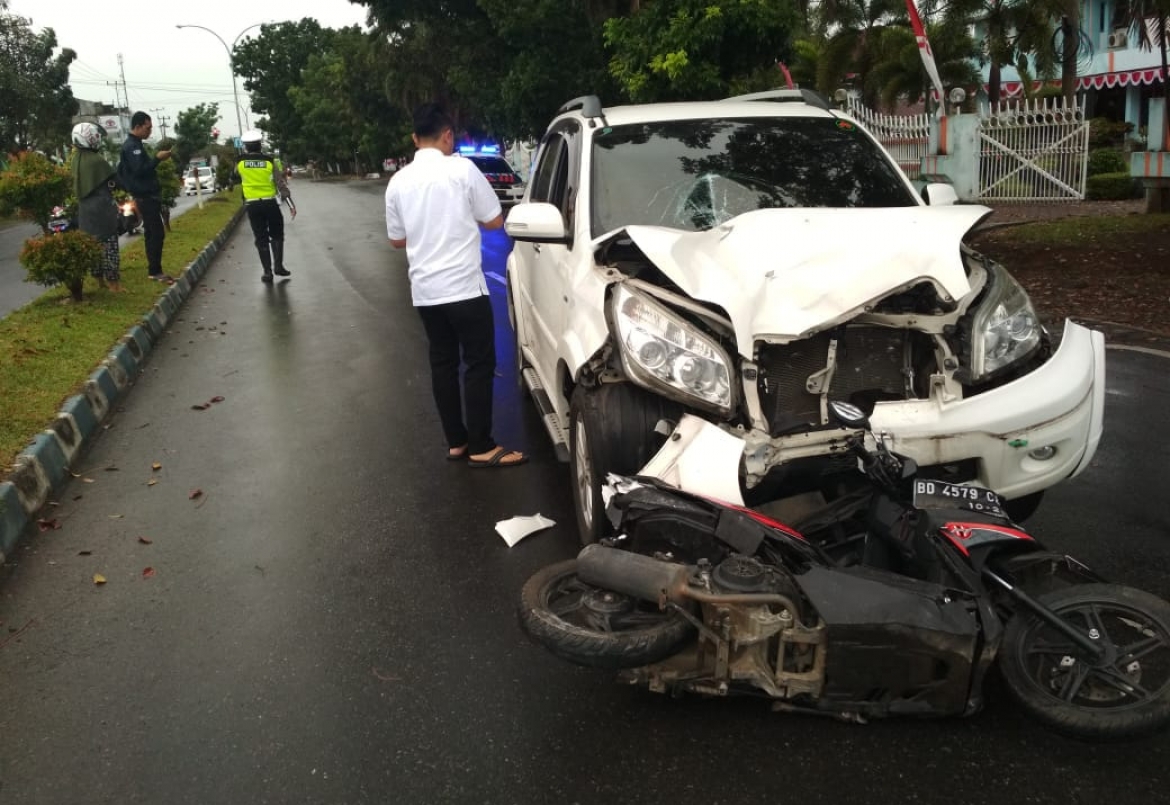 Rakjat.com - Laka Lantas terjadi di Jalan P. Natadirja Kecamatan Gading Cempaka Kota Bengkulu, tepatnya depan Rumdin Wakil Gubernur Bengkulu antara mobil Daihatsu Terrios BD 1325 AS warna putih yang dikendarai Bakal Calon (Bacaleg) DPRD Kota Bengkulu dari partai PDIP Dapil 1 dengan sepeda motor Honda Beat BD 4679 CO warna hitam yang mengakibatkan satu orang ibu rumah tangga (IRT) meninggal dunia pada Rabu pagi (22/8/2018).