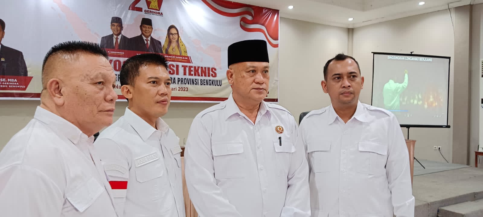 Hal ini diungkapkan dirinya saat menghadiri Rapat Kordinasi Teknis (Rakornis) DPD Partai Gerindra Provinsi Bengkulu bertempat di Hotel Nala Sea Side Bengkulu pada Minggu (22/01/2023).