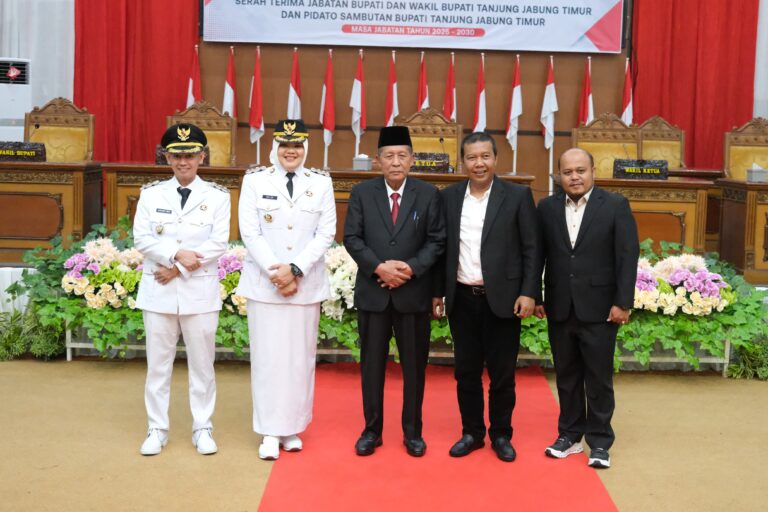 “Selamat bertugas Ibuk bupati dan bapak wakil bupati Tanjabtim periode 2025-2030 Ibuk hj. Dillah hikmah sari hich dan bapak muslimin tanja, dan saya juga mengucap kan terima kasih kepada bapak mantan bupati romi hariyanto dan bapak mantan bupati robby nahliansyah yang telah bersinergi sama-sama membangun bumi sepucuk nipah serumpun nibung ini”ucap nya.