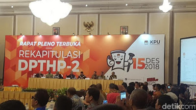 Jakarta, Rakjat.com - Komisi Pemilihan Umum (KPU) RI umumkan jumlah Daftar Pemilih Hasil Tetap Hasil Perbaikan ke-2 (DPTHP-2) Pemilu 2019, Sabtu (15/12). Dalam penetapan jumlah DPTHP-2, KPU menetapkan ada 192.828.520 jiwa yang terdiri dari kabupaten/kota, 7.201 kecamatan, dan 83.405 kelurahan di Indonesia.
