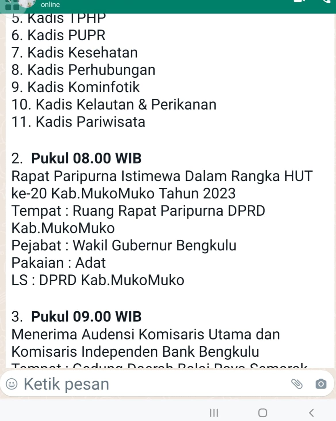 Bengkulu, Rakjat.com - Kepala Dinas (Kadis) Komunikasi Informatika dan Statistik (Kominfotik) Provinsi Bengkulu Redhwan Arif menyampaikan permintaan maaf atas nama Pemerintah Provinsi (Pemprov) Bengkulu terkait tidak hadirnya pejabat pemprov pada Rapat Paripurna Istimewa DPRD Kabupaten Mukomuko dalam rangka Hari Jadi Ke-20 Kabupaten Mukomuko Tahun 2023.