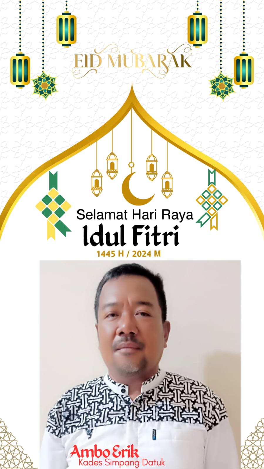 Tanjabtim,Rakjat.com -Ambo Erik Kepala Desa Simpang Datuk Kecamatan Nipah Panjang Kabupaten Tanjung Jabung Timur mengucapkan selamat Hari Raya Idul Fitri 1445 Hijriyah bagi seluruh Umat Muslim,Rabu(10/04/2024).