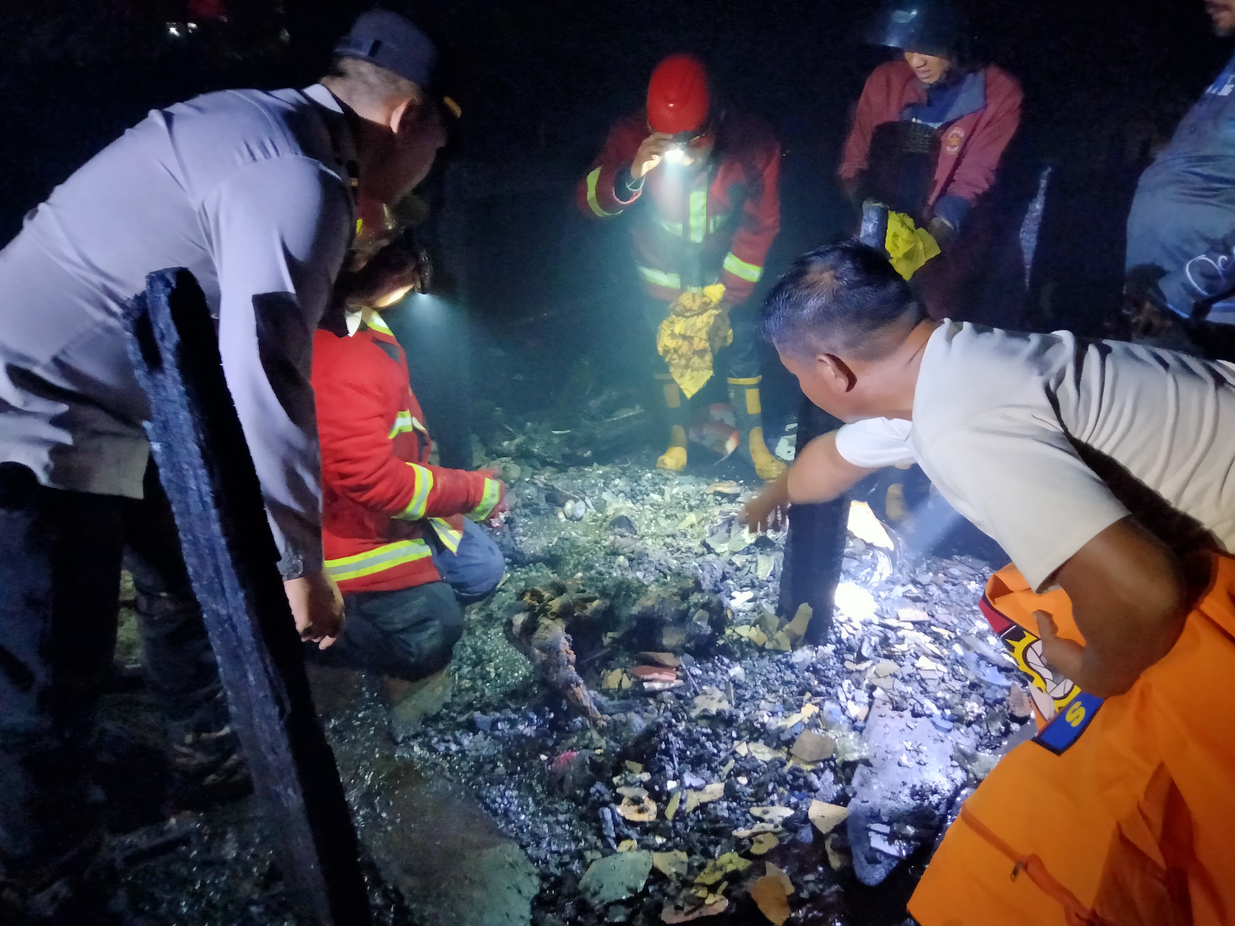 Selanjutnya, petugas bersama warga melakukan pencarian terhadap korban. Sekira pukul 03.00 WIB, korban ditemukan dalam kondisi meninggal dunia di balik puing-puing bangunan yang terbakar.