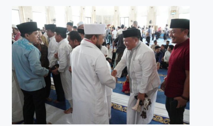 Kota Bengkulu, Rakjat.com - Walikota Bengkulu Helmi Hasan dan wakil walikota Dedy Wahyudi melaksanakan salat Idul Adha 1444 hijriyah di Masjid Agung At Taqwa, Kamis (29/6/23). Sebelum salat berjamaah, Helmi menyampaikan kata sambutannya mengenai ajakan untuk menjaga kesatuan dan persatuan serta memakmurkan masjid.