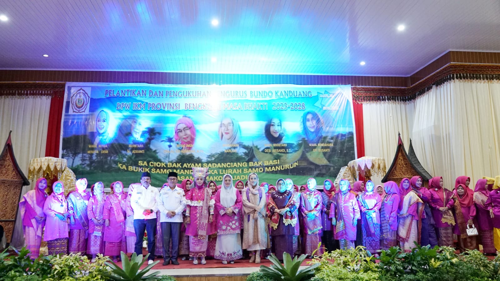 Bengkulu, Rakjat.com - Ketua TP PKK Provinsi Bengkulu Derta Rohidin menghadiri pelantikan pengurus Bundo Kanduang DPW IKM Provinsi Bengkulu di Adeeva Hotel, Sabtu (25/11).