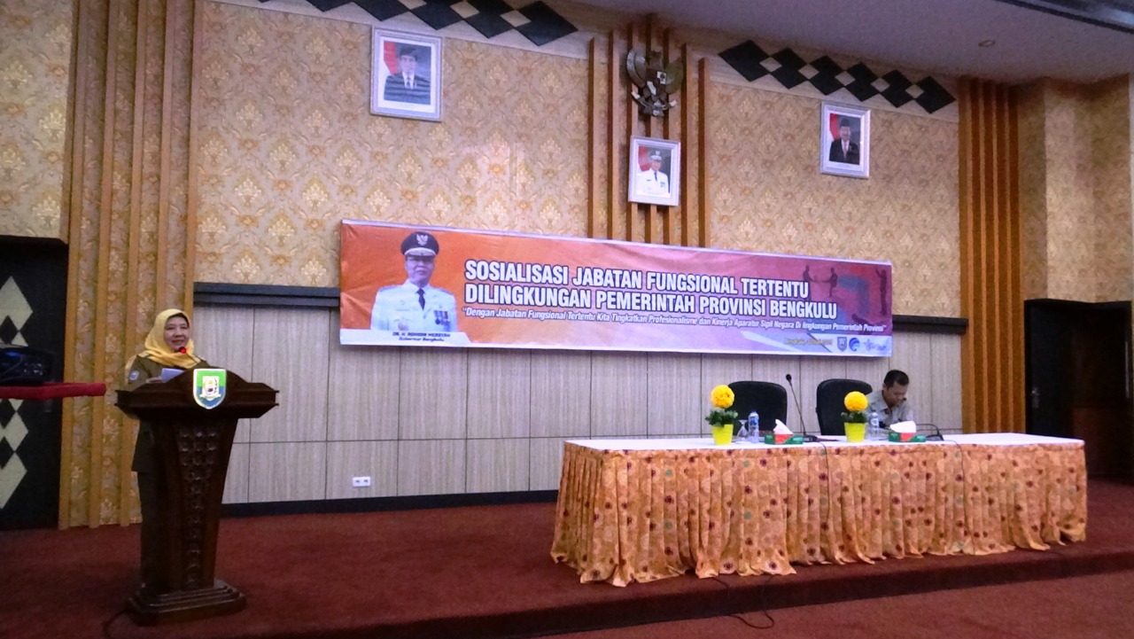 “Lebih dari itu jabatan fungsional adalah jabatan ASN yang sesungguhnya, jadi kalau mau lihat kemampuan seseorang saat dia berada di fungsional itu karena jelas pekerjaannya dan capaian kinerja juga terkukur,” jelas Kepala BKD Provinsi Bengkulu Diah Irianti pada Pembukaan Sosialisasi Jabatan Fungsional Tertentu di Lingkungan Pemerintah Provinsi Bengkulu, di Ruang Pola Provinsi Bengkulu, Selasa (30/07).