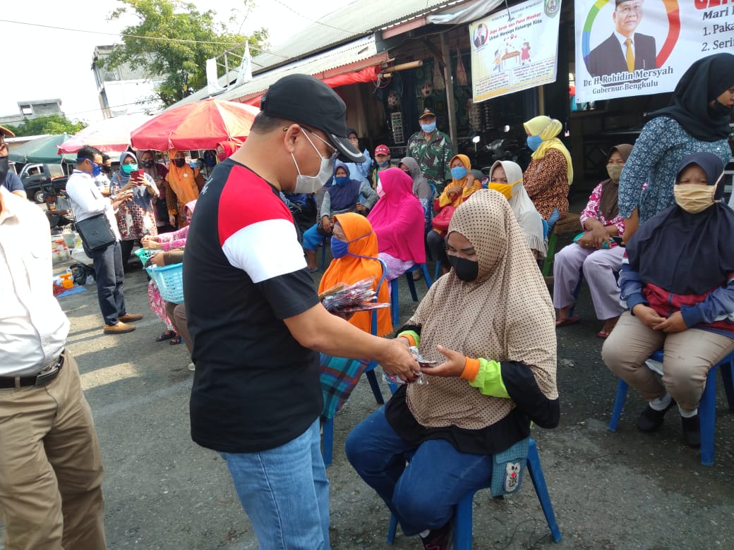 Saat di Pasar tersebut Gubernur Rohidin mensosialisasikan mencuci tangan dan membagikan masker kepada Pedagang dan juga Pembeli di Pasar. Gubernur Rohidin juga menyempatkan diri berkeliling dan bercengkrama di Pasar sembari memantau infrastruktur penunjang Pasar.