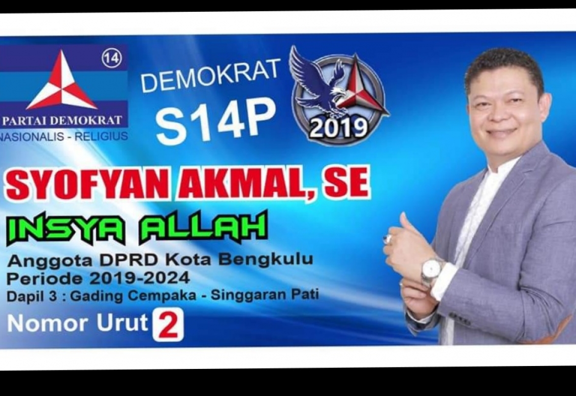 Bengkulu,Rakjat.com - Pemilihan Legeslatif kurang lebih tinggal 50 Hari lagi, Caleg DPRD Kota Bengkulu dari Partai Demokrat Nomor Urut 2 Dapil Singaran Pati dan Gading Cempaka, Syofyan Akmal mengajak untuk menjaga kedamaian jelang Pemilu 2019.