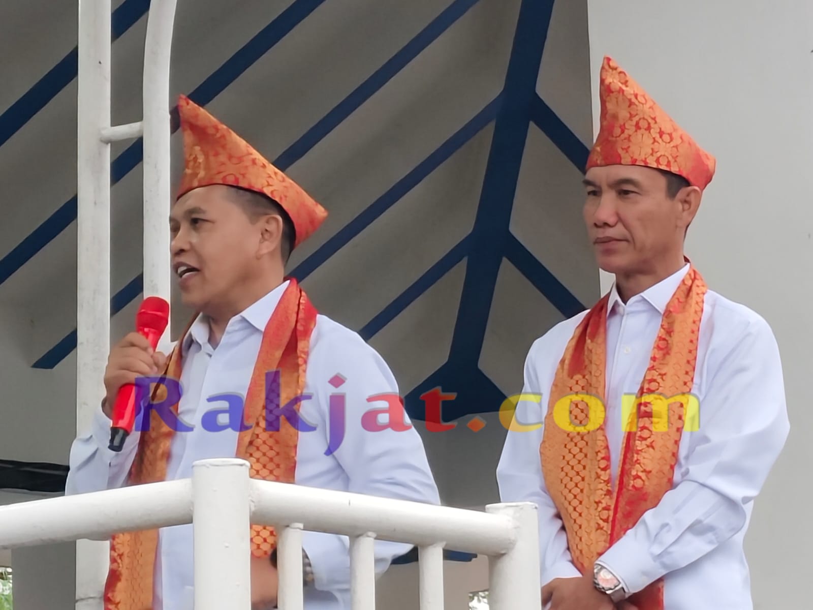Lebong, Rakjat.com - Penyambutan Bupati Lebong H.Azhari,SH,.MH dan Wakil Bupati Lebong Bambang ASB S.Sos M.Si dihadiri ribuan pendukung A-Bang Sekabupaten Lebong.