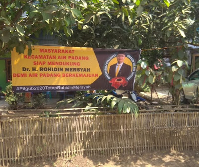 Pantauan Media ini terlihat terpasang spanduk di Halaman Rumah Warga Tepatnya di Desa Kembang Manis Kecamatan Air Padang yang menyatakan Siap Mendukung DR H Rohidin Mersyah di Pilgub 2020 untuk Kecamatan Air Padang Berkemajuan.