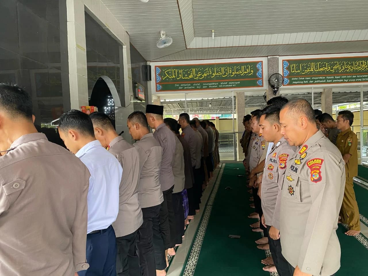 Kapolres Tanggamus AKBP Rivanda, S.I.K mengajak seluruh anggota Polri dan jamaah Masjid Hidayatullah untuk berdoa bersama sebagai bentuk penghormatan dan solidaritas terhadap anggota Polri yang telah berkorban demi menjalankan tugas negara.