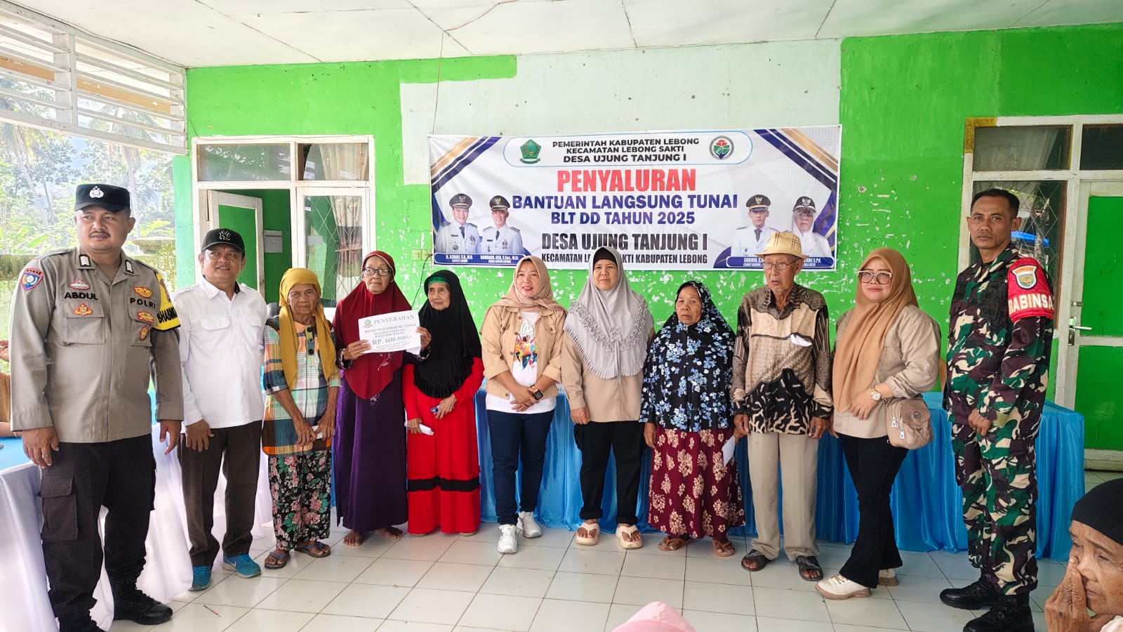 Penyaluran Bantuan Langsung Tunai tersebut di laksakan di Balai Desa Ujung Tanjung 1, terlihat perwakilan KPM yang hadir sebanyak 10 orang dan yang tidak hadir di datangi lansung oleh Pemerintah Desa Ujung Tanjung 1 yang di dampingi Babhinsa dan Bhabinkhatibmas serta pihak kecamatan ke rumah penerima lansung.