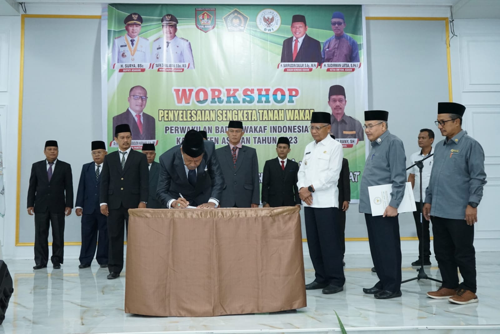 Asahan | Rakjat.com - Bupati Asahan H. Surya BSc melantik pengurus Badan Wakaf Indonesia (BWI) Kabupaten Asahan Periode 2023-2026 sekaligus membuka secara resmi Workshop BWI di Hotel Antariksa, Rabu (20/12/2023).