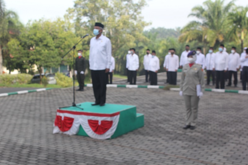 Bengkulu,Rakjat.com – Di Halaman Gedung Rektorat, IAIN Bengkulu menggelar Upacara Peringatan Hari Amal Bakti (HAB) Kemenag RI ke-75 pada Selasa,(5/1). Pelaksanaan ini dilakukan sesuai Surat Edaran (SE) Nomor 69 Tahun 2020 yang menyebutkan peringatan upacara dilaksanakan serentak seluruh satuan kerja Kementerian Agama Pusat maupun daerah dengan peserta terbatas, dan dengan protokol kesehatan ketat.