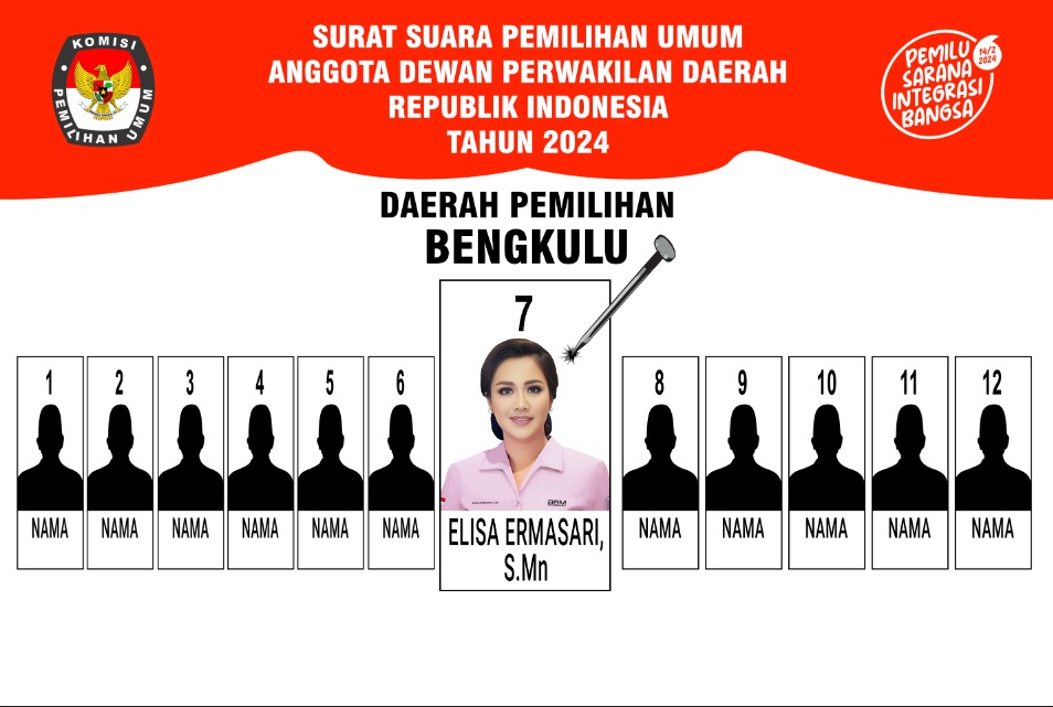 Bengkulu, Rakjat.com - Pemilihan Umum (Pemilu) tinggal hitungan hari. Dari 12 Calon DPD RI Dapil Bengkulu, Calon DPD RI Elisa Ermasari menjadi satu satunya calon yang memiliki potensi akan meraih suara terbanyak. Berikut 7 tanda - tanda Elisa akan mengungguli kandidat lain :