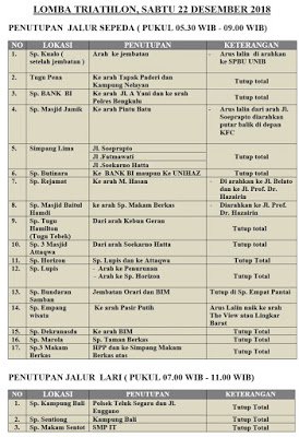 dilakukan penutupan dalam rangka menyukseskan lomba Triathlon yang digelar di
