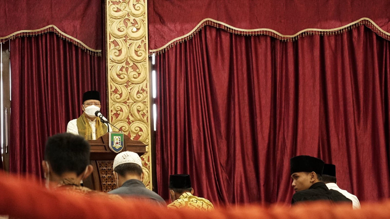 Bengkulu, Rakjat.com - Gubernur Rohidin Mersyah melaksanakan sholat Idul Adha 1442 H secara sederhana bersama staf rumah tangga rumah dinas gubernur di Balai Raya Semarak Bengkulu, Selasa (20/7).