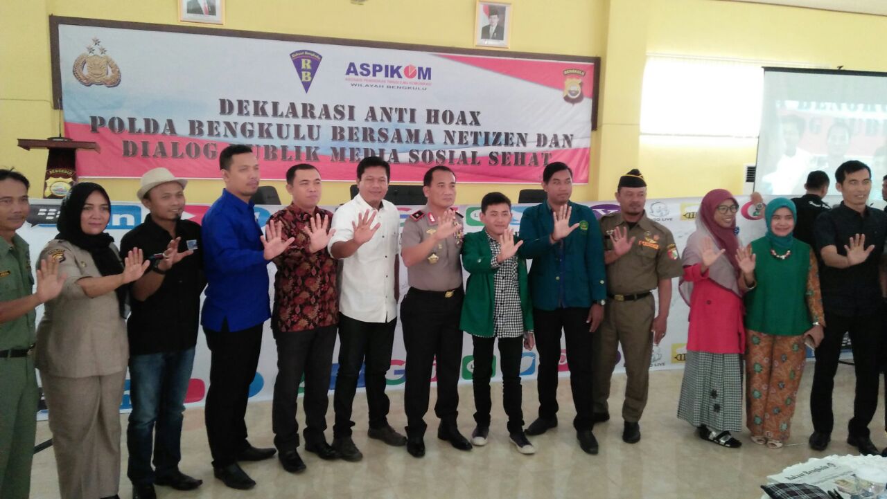 Jadikan Media Sosial Sehat, Polda Bengkulu Bersama Netizen Deklarasikan Anti Hoax