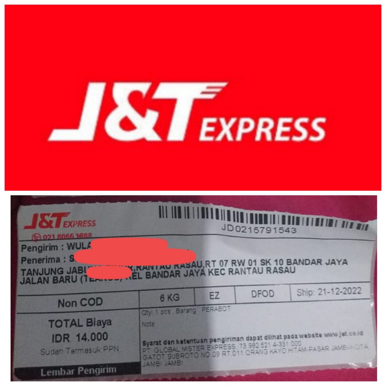"Padahal paket pesanan saya itu hanya dari Jambi kota dikirim pada tanggal 21 Desember 2022 dan telah sampai di kantor J&T Express Rantau Rasau pada tanggal 22 Desember 2022 dengan dua paket pesanan, sementara paket yang telah diantar hanya satu, namun paket yang satunya tidak kunjung tiba," jelas SM.