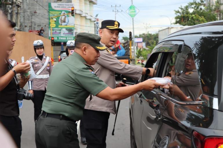 Polres Tanggamus dan Kodim 0424/TGM Bagikan Takjil ke Pengguna Jalan