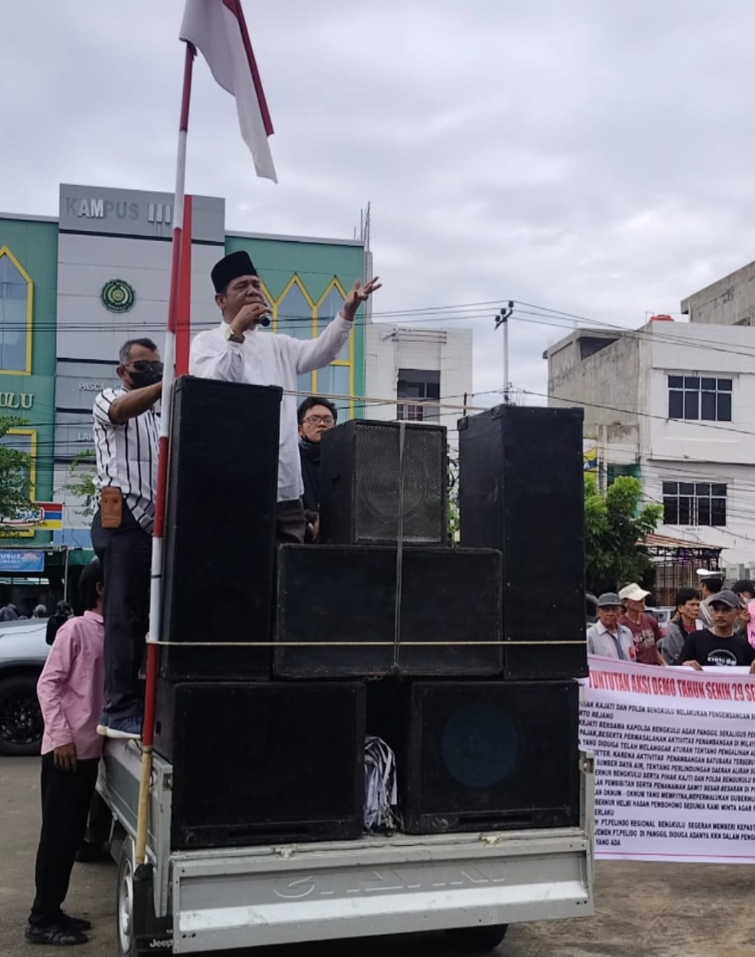 Dalam aksi ini, para demonstran menegaskan dukungan mereka kepada pihak Kejati dan Polda Bengkulu agar menjalankan penegakan hukum yang tidak tebang pilih, tidak tumpul ke atas, dan tidak tajam ke bawah.