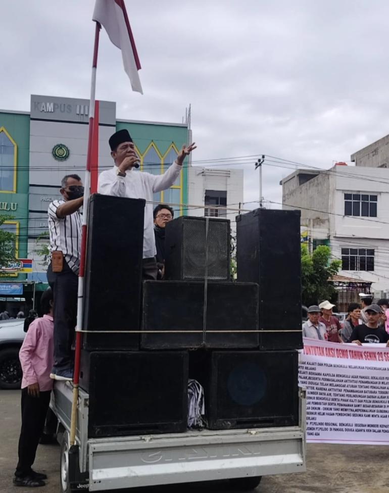 Aksi yang berlangsung di Bengkulu ini dikoordinatori oleh Rahman T, dan menegaskan bahwa masyarakat menginginkan penegakan hukum yang transparan, adil, serta konsisten terhadap semua pihak tanpa pandang bulu.