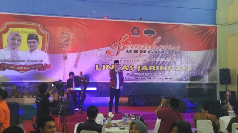 "Semuanya berkumpul disini bergembira ria menikmati hiburan, yang kita namakan Simphony musik bengkulu lintas jaringan, harapannya silahturahmi bisa terbangun disini. Selain itu, dengan terbangunnya silaturahmi ini dapat memperkuat rasa bahu membahu untuk memenangkan Linda-Mirza sebagai Walikota dan Wakil Walikota Bengkulu periode 2018-2023," ujar Hamdani atau akrap disapa Daniel.