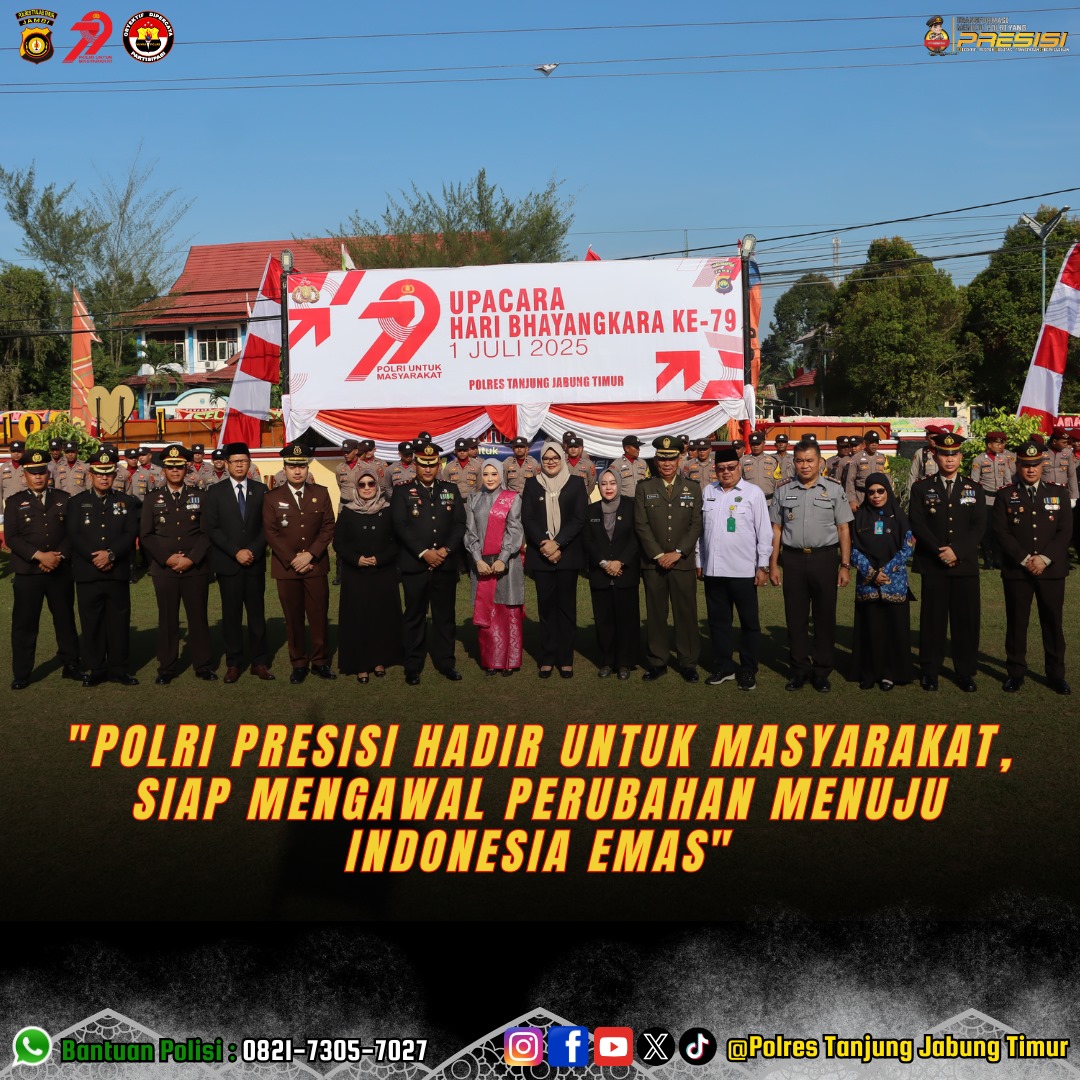 Polres Tanjung Jabung Timur melaksanakan Upacara Peringatan Hari Bhayangkara ke-79 secara khidmat di halaman Mapolres.Selasa 01/07/25.