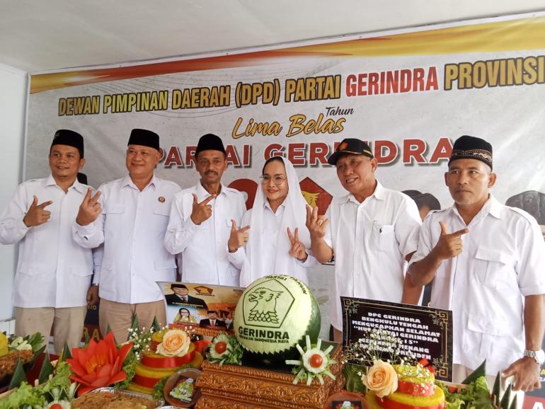 Bengkulu, Rakjat.com - DPD Partai Gerindra Provinsi Bengkulu menggelar Peringatan Hari Ulang Tahun (HUT) ke-15 yang ditandai langsung dengan potong tumpeng.