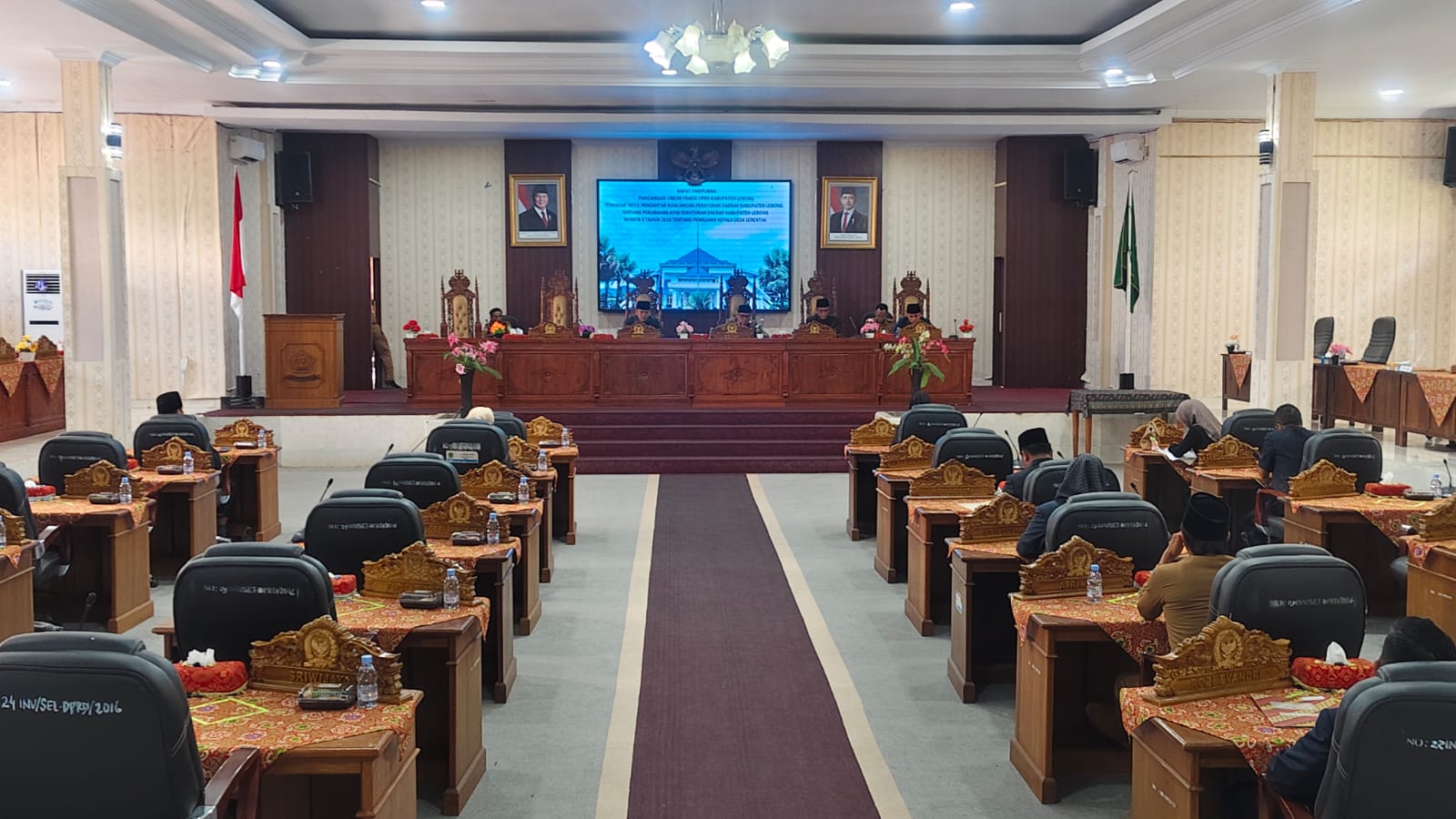terhadap Nota Pengantar Raperda Kabupaten Lebong Nomor 5 Tahun 2016 Tentang Pemilihan Kepala Desa Serentak tersebut berlangsung di ruang rapat paripurna DPRD, yang di pimpin langsung oleh ketua DPRD Kabupaten Lebong Carles Ronsen, Di dampingi oleh Waka I, Waka II dan Bupati Lebong serta Anggota DPRD Kabupaten Lebong.