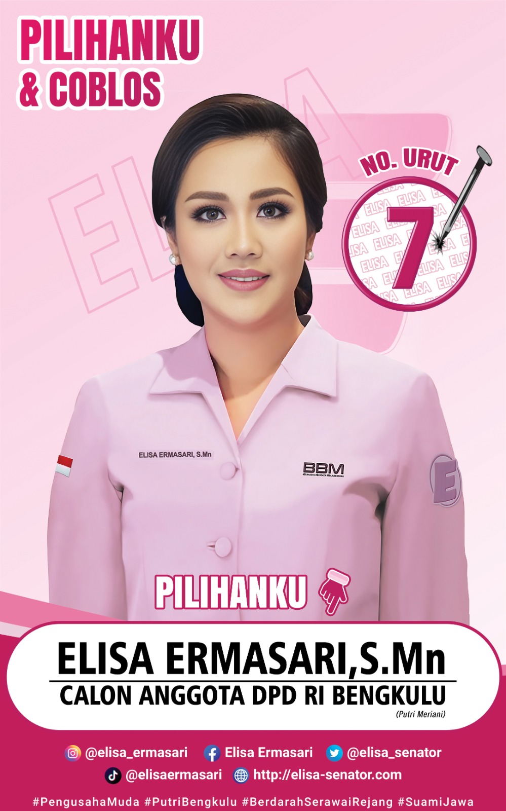 Elisa Ermasari tokoh perempuan Bengkulu sekaligus Pengusaha Muda mendapatkan dukungan dari berbagai lapisan masyarakat untuk maju sebagai calon Anggota DPD RI 2024-2029.