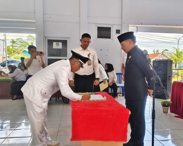 "Hari ini kita menindaklanjuti surat keputusan Bupati, untuk melantik pejabat sementara Kepala Desa Sukau Datang 1," Kata Camat.